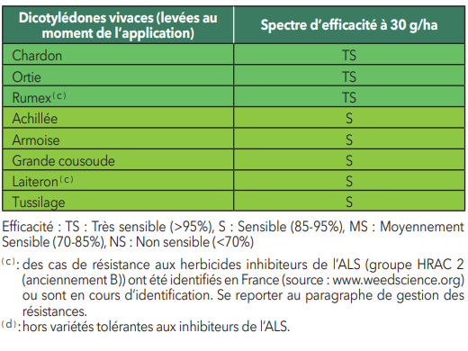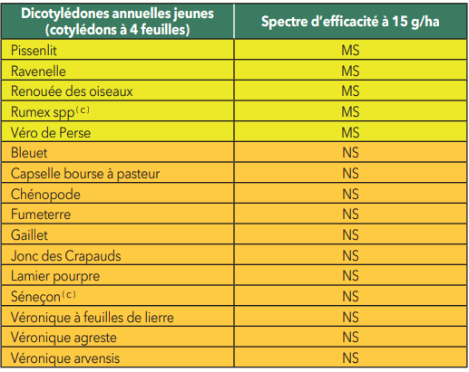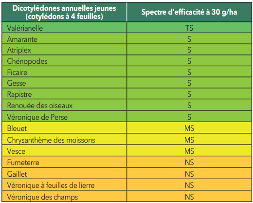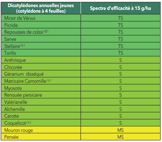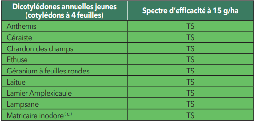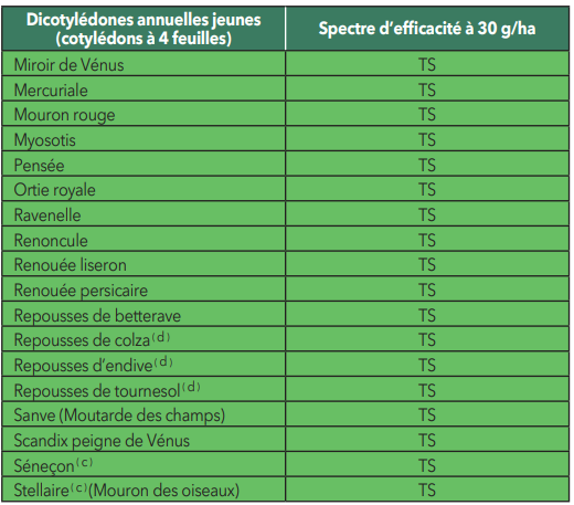 Ce produit est uniquement homologué sur les cultures mentionnées dans le tableau des usages autorisés ci-dessus (colonne “Cultures autorisées”) et n’est donc pas autorisé sur les autres cultures prévues par le catalogue des usages en vigueur.