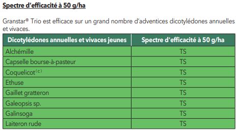 Granstar® Trio ne doit pas être utilisé pour le désherbage du seigle de printemps.
