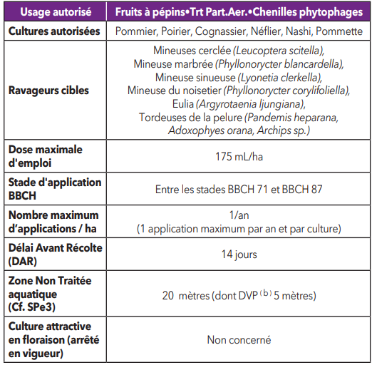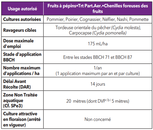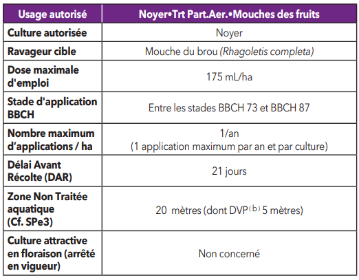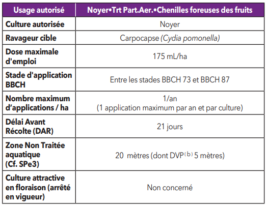 Ce produit est uniquement homologué sur les cultures et sur les cibles mentionnées dans le tableau des usages autorisés ci-dessus (lignes «Culture(s)