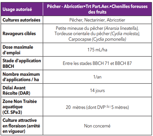 pour une utilisation sur «vigne», «pêcher-abricotier», «prunier», «noyer» ou «fruits à pépins».